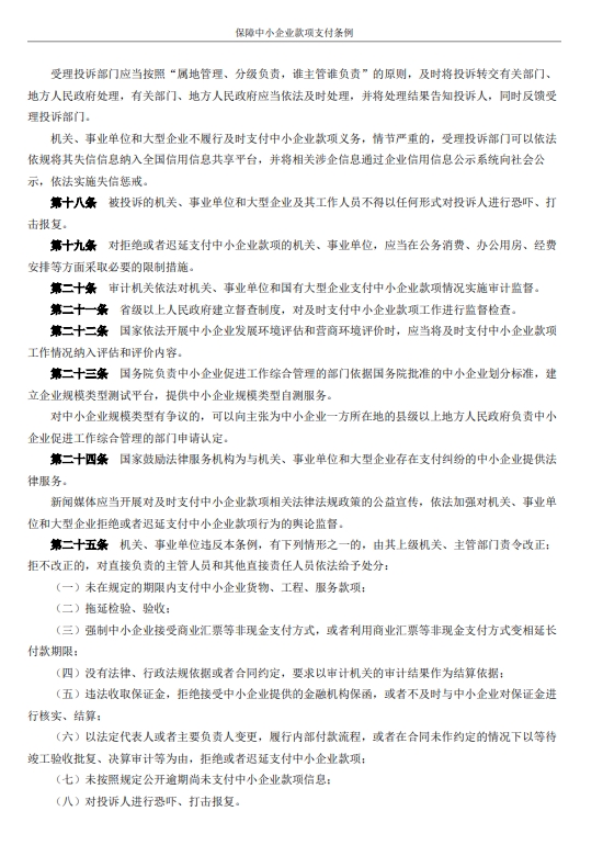 保障中小企业款项支付条例